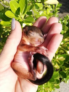 Die Saison ist dieses Jahr früh gestartet. Bereits am 27.02. wurden die ersten nackigen Eichhörnchen beim Baumfällen übersehen und müssen nun aufgepäppelt werden.