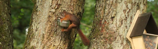 Um den Start zu erleichtern sind in den umliegenden Bäumen Kobel aufgehängt. Die Nachbarn freuen sich über die quirligen Besucher und unterstützen unsere Arbeit, indem sie fleißig helfen die Tiere zu füttern.